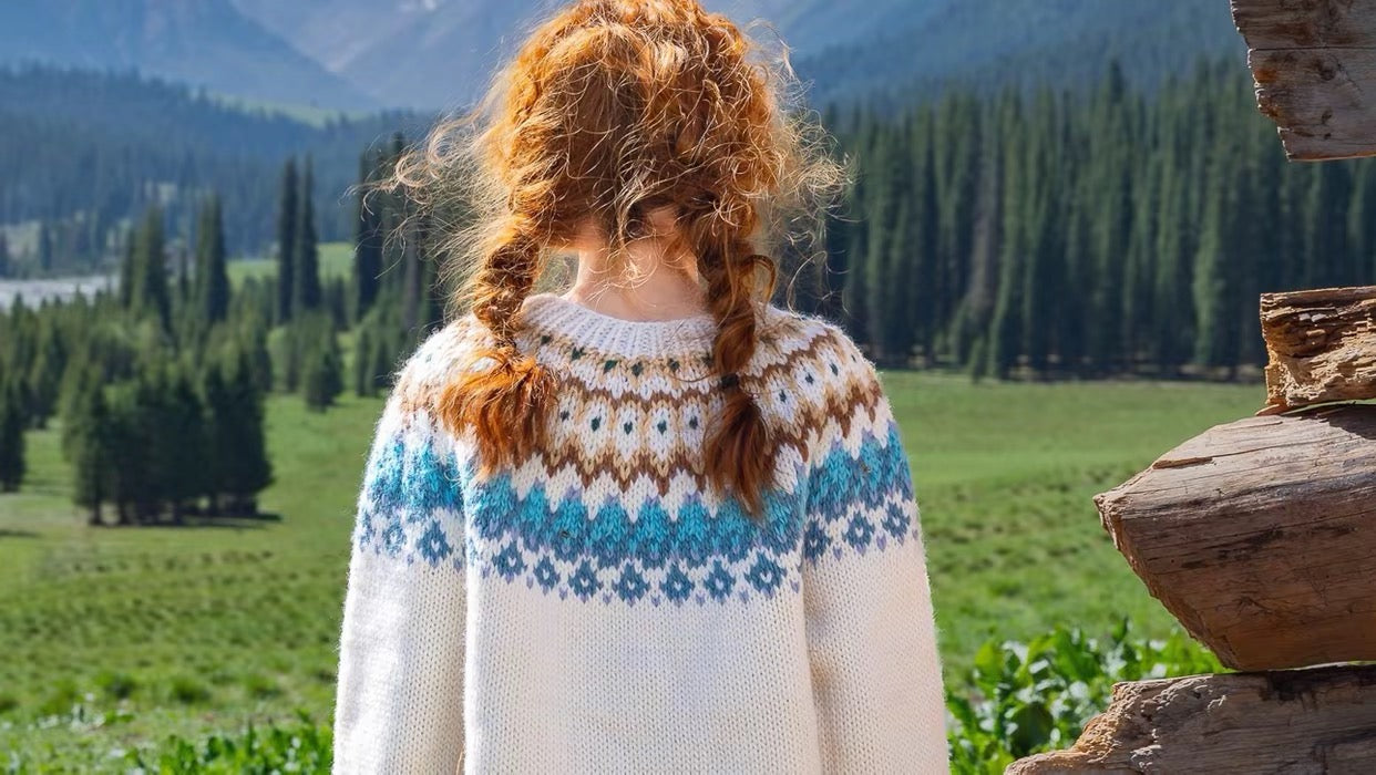 「Wool Signature」Green Nordic Fair Isle Wool Sweater – Chunky Knit (100% Wool)